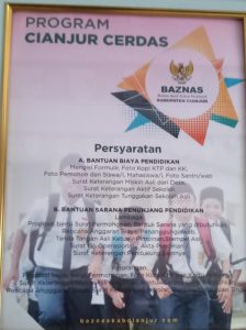 Cianjur, Jabar -esconcer.com- Badan Amil Zakat Nasional (BAZNAS) Kabupaten Cianjur memberikan bantuan biaya pendidikan bagi anak yatim, fakir, dan miskin. Hal ini sebagai bentuk komitmen BAZNAS Kabupaten Cianjur, membantu pemerintah mewujudkan program Cianjur Cerdas.